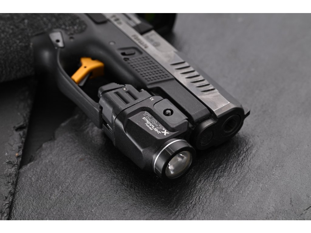 Podvěsná pistolová svítilna z produktové řady TLR pro zbraně velikosti compakt. Nízkoprofilový design zabraňuje možnosti zachycení při manipulaci. Speciální pojistka znemožní náhodné nechtěné aktivaci a šetří baterie. Svítilna je zkonsturována z odolné slitiny leteckého hliníku, voděodolné dle normy IPX4. Díky precizní optice vytváří úzký paprsek světla s optimálním periferním osvětlením. Napájena je jednou CR123A baterií a vydrží v provozu až 1,5 hodiny. Díky speciálnímu mechanismu pro uchycení na lištu lze jednoduše připojit nebo odpojit bez nutnosti používat jakékoliv nářadí nebo nebo manipulovat s rukama před hlavní.
