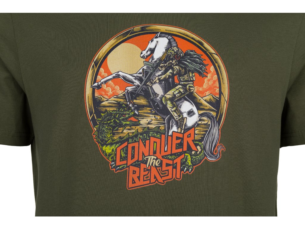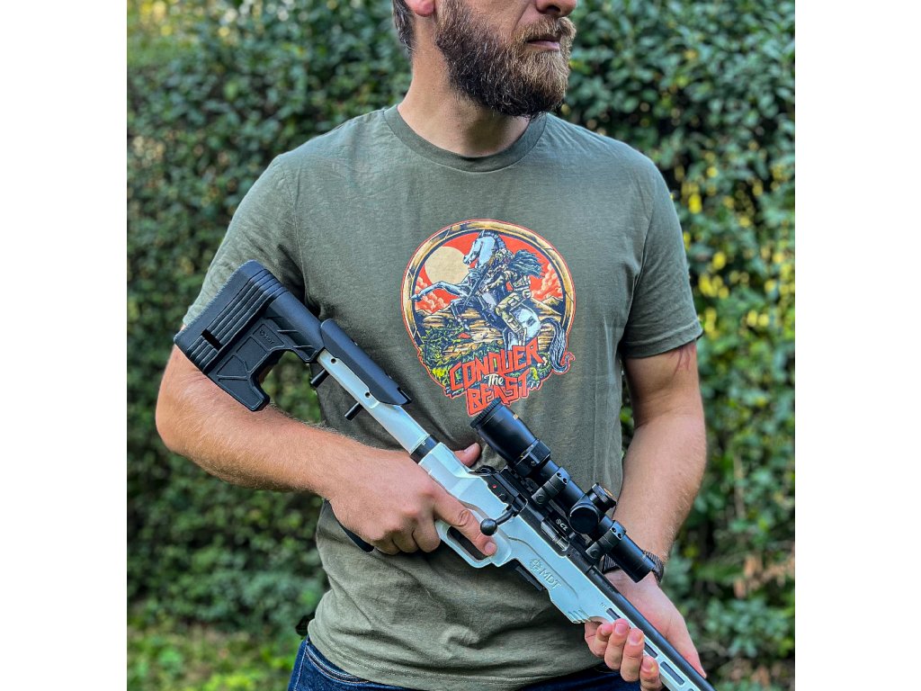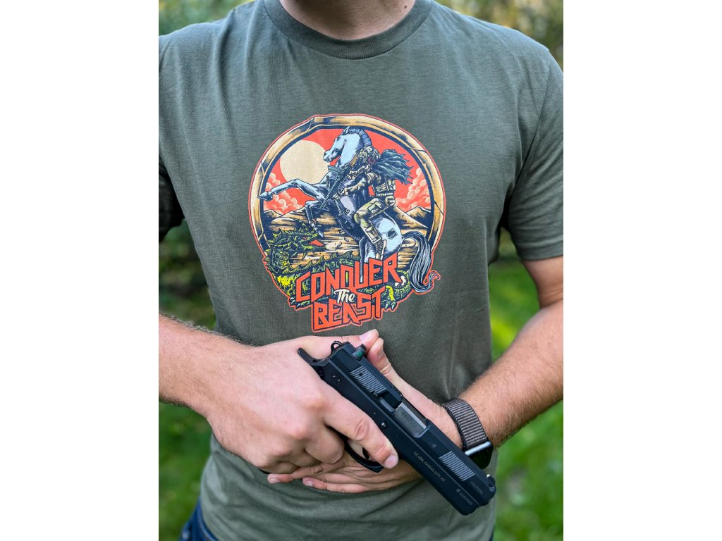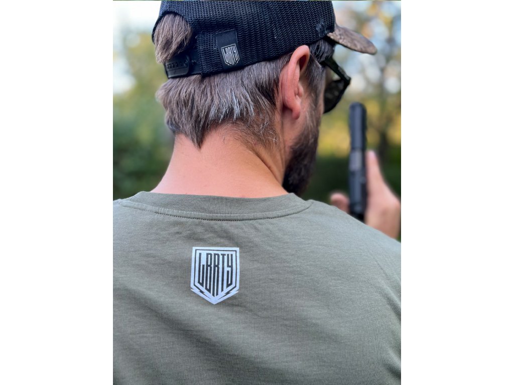 Triko Land of Liberty SEJMI BESTII v khaki barvě – čistý design, kvalitní materiál a originální střelecký styl.
